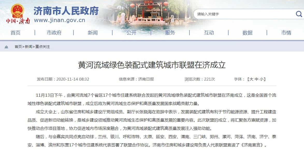 近日,由黄河流域7个省区17个城市住建系统联合发起的黄河流域绿色装配式建筑城市联盟在济南成立,这是全国首个流域性绿色装配式建筑城市联盟,成立后将为黄河流域生态保护和高质量发展国家战略贡献力量。