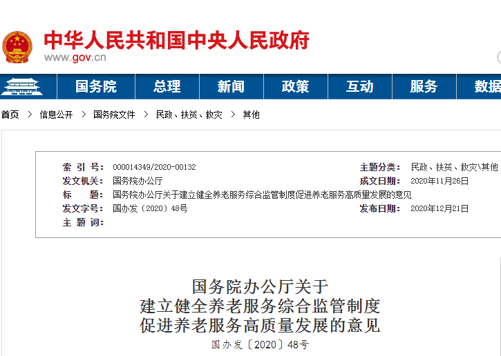 近日,国务院办公厅印发了《关于建立健全养老服务综合监管制度促进养老服务高质量发展的意见》(以下简称《意见》),对养老服务综合监管工作作出部署。
