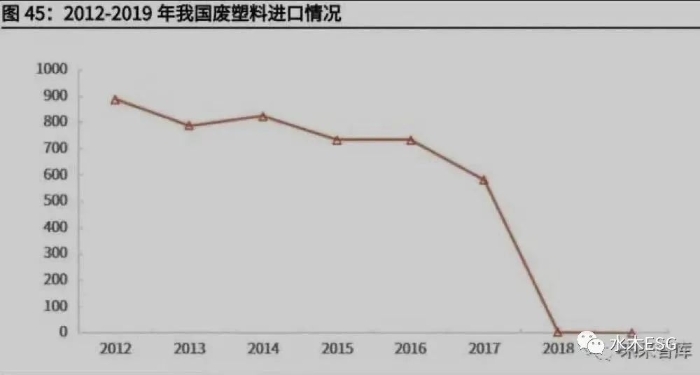“限废令”政策对我国废塑料进口产生较大冲击。2018 年前,我国废塑料进口 量虽然逐年有下降,但进口量仍保持在 500 万吨以上,2017 年“禁止洋垃圾进 口”政策出台后,2018 我国废塑料的进口数量仅为 5 万吨,同比下降 99.1%, 2019 年进口总量几乎可忽略,同比下降 100%。