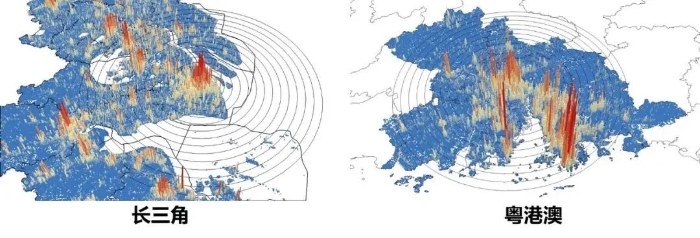 图5 我国长三角、粤港澳地区人口分布情况(150公里圈)