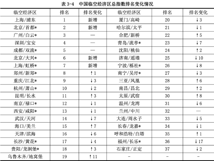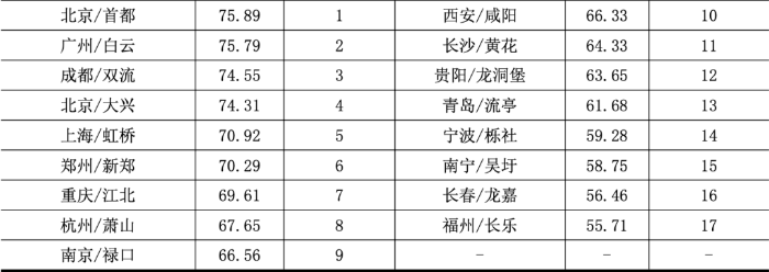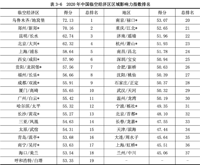其中,排名上升幅度最大的是乌鲁木齐临空经济区,上升11 个位次。《报告》分析,乌鲁木齐在区域影响力指标中排名第一,这是其名次上升的主要原因。福州名次下降幅度最大,达到 17 位。这主要与福州受疫情影响导致机场三大核心运营指标——客运吞吐量、货邮吞吐量以及飞机起降架次下降幅度较大有关。