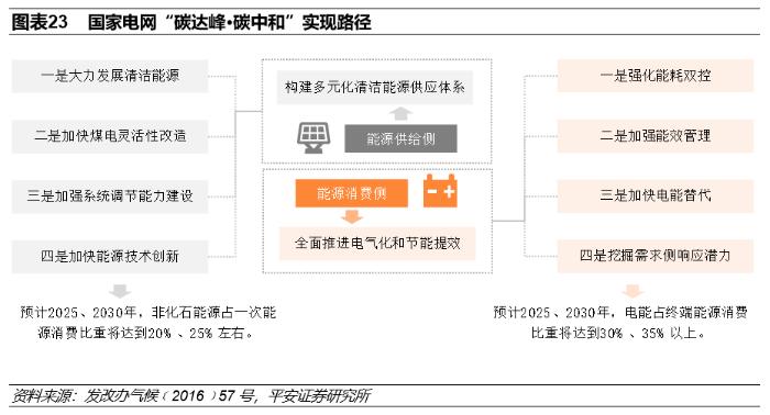 从政策支持上看,《白皮书》表示国家将大力推进低碳能源替代高碳能源、可再生能源替代化石能源,并明确提出了支持发展新能源领域的几个具体方向:(1)推动太阳能多元化利用。(2)全面协调推进风电开发。(3)推进水电绿色发展。(4)安全有序发展核电。(5)因地制宜发展生物质能、地热能和海洋能。(6)全面提升可再生能源利用率。此外,2021年3月1日,国家电网公司发布“碳达峰、碳中和”行动方案,提出能源电力达成“碳达峰·碳中和”行动路径,从能源的供给端和消费端共同布局了实现能源电力的30·60目标。