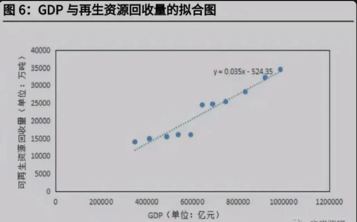 我国经济发展与资源回收利用量之间高度相关。根据商务部流通业发展司发布的 《中国再生资源回收行业发展报告》和再生资源信息网的统计,2011-2018 年我 国主要再生回收价值从 5764 亿元上升到 8705 亿元,年均增长突破 6%;从总量上看,制造业、消费体量是 GDP 核心包含要素,这也恰恰是再生资源品的重 要来源。