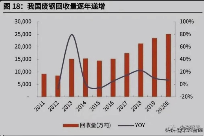 碳达峰、碳中和提出后,电炉(如果使用清洁能源)具有一定的减排效果,路线 低碳化转变的过程中,会提升废钢的需求。