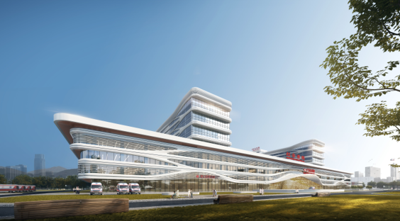 设计发扬红会医院“一院三区”的发展脉络,以具有强红会医院特征的“H”形作为高铁新城院区的第五立面造型,形成红会医院的建筑名片。全面归纳红会医院南稍门院区的文化内涵,传承核心风貌,在高铁新城院区转译重现,在城市尺度上实现南北院区的一体化呈现。深入挖掘百年红会的发展历史,从医院发展的历史脉络中截取标志性“门头”要素,以建筑雕塑的手法,于新院区重塑“历史之门”,同“百年讲堂”一道置于城市中轴线上,强烈的传达出红会医疗品牌的特色与传承。通过百年(Hundred years)历史与红会(HongHui)医院的荣光(Halo)汇聚,建成传承红会品牌之医院。