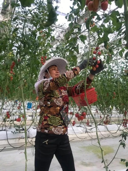 工人在江西华业农业科技有限公司的温室大棚里采摘圣女果。新华社记者陈春园 摄