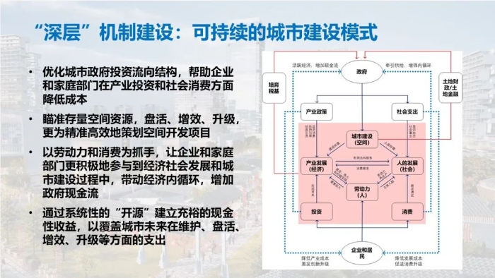 其次是“深层”机制建设,就是要建立起可持续的城市建设模式。