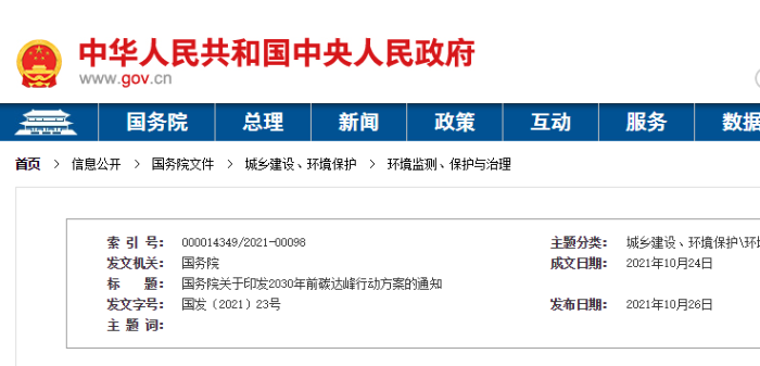 《2030年前碳达峰行动方案》提出: