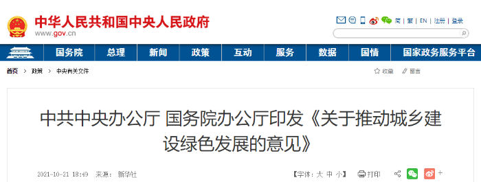 3、中共中央办公厅 国务院办公厅印发《关于推动城乡建设绿色发展的意见》