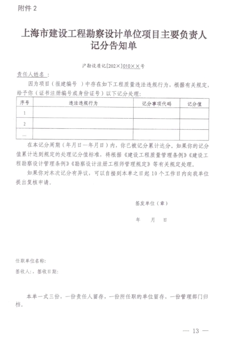 以他人名义或允许他人以本人名义担任勘察设计负责人,或仅挂名而未实际履职的(一次记12分)