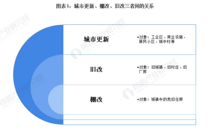 在“城市更新”概念提出之前,我国前期推行的“棚户改造”行动、“旧改”工程等,也均属于城市更新的范畴;但与“棚改”、“旧改”相比,城市更新涉及的范围更广、市场化程度更高,除了居民住宅,城市更新的对象还包括工业厂房、商业设施等: