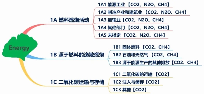 图3 能源部门温室气体排放源及气体