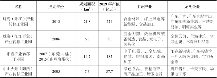 阳江一直以来是广东省沿海发展的洼地城市(2019年阳江市的地区生产总值1292.2亿元,在全省21个地市中排名倒数第6),近20年以来与多个粤港澳大湾区城市有着产业合作与共建帮扶的经验。2014年以来,珠海与阳江建立对口帮扶关系,至2020年落实帮扶资金27.3亿元及产业项目约730个,阳江城市发展取得了一定成效。但阳江市所处的“珠中江”(珠海、中山、江门)经济圈与同在珠江西岸的“广佛肇”(广州、佛山、肇庆)及“深莞惠”(深圳、东莞、惠州)经济圈相比,还处于集聚发展阶段,经济溢出效应有限。因此,目前阳江经济增长内生性特征明显,工业以五金刀剪、食品加工、金属冶炼等传统产业、资源依赖型产业为主,与区域内其他城市企业关联较为薄弱。在粤港澳大湾区建设、“双转移”战略向纵深推进背景下,湾区功能外溢趋势加强,阳江市如仅仅依靠帮扶政策与珠海进行“单点”联系,缺少从自身比较优势出发,与广州、深圳等湾区核心城市的更多经济关联,在面临湛茂都市圈的竞合情况下,区域产业承接面受限,难以形成稳定的区域协作互惠共享关系。