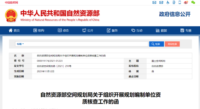 自然资源部空间规划局:组织开展规划编制单位资质核查工作