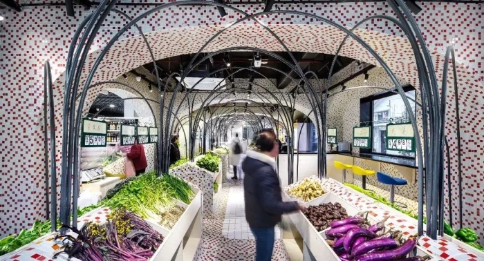 近年来菜市场改造纷纷走向网红化,结果往往是打卡的人多了,但菜市场的生意却变惨淡了。图为上海愚园公共市集和北京三源里菜市场。(图片来源/智筑网、搜狐时尚)