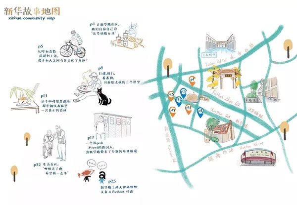 新华路的更新项目入选了2018年上海社会治理创新十佳实践案例。图为专为新华路定制的街区刊物《新华录》创刊号中的新华故事地图。(图片来源/澎湃新闻)