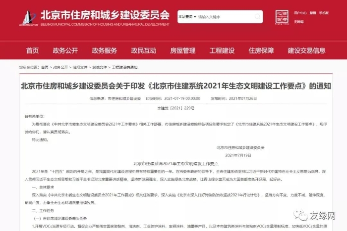 北京市在今年7月印发了《北京市住建系统2021年生态文明建设工作要点》,提出实施二氧化碳排放控制专项行动,统筹推进建筑领域温室气体排放控制,2021年完成《北京市民用建筑节能减碳工作方案》。