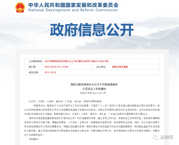 其实早在2011年,国家发展改革委就出台了《关于开展碳排放权交易试点工作的通知》。该文件发布后,国家发展改革委同意北京市、深圳市等7个地区开展试点。2013年,深圳市启动试点,试点领域包括工业、建筑和交通板块,首批纳入交易体系的包括198栋公共建筑(大型办公建筑、商场建筑、旅游饭店建筑)。其他地区的试点与深圳市大同小异。