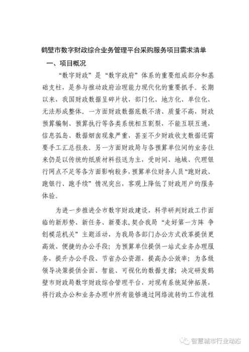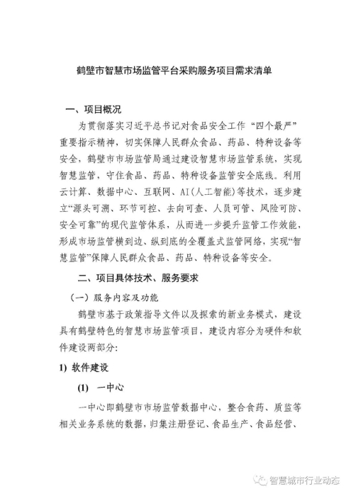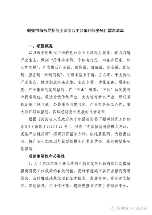 回复本订阅号“智慧鹤壁2119”,可下载本采购需求公示。