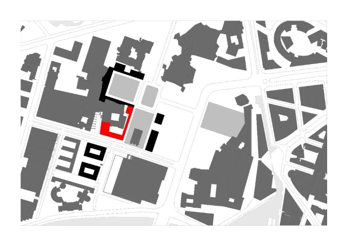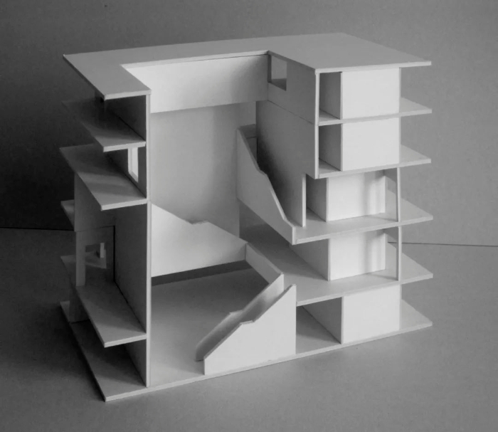 陈曦的思考源于就读德国魏玛包豪斯大学建筑学研究生期间,接触到的一个项目:在德国历史文化的核心区域柏林文化广场,设计一座柏林私人档案馆。这里是柏林最重要的市民文化生活场所之一,集中有建筑师汉斯·夏隆设计的柏林爱乐音乐厅、柏林国家图书馆,密斯·凡德罗设计的新国家艺术画廊,以及圣马太教堂、新国家图书馆等,不同时期的建筑和文化交叠融合,要求每一个「点」的实践,都必须进行整体考量,符合柏林的城市规划。
