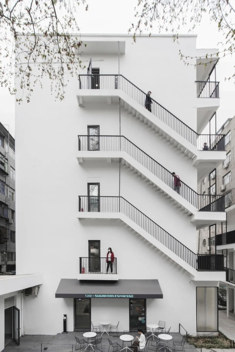 一门之隔,串联出时代更迭之下的城市格调和温度。陈曦说,城市更新是个技术活,不是艺术活,改造的原则是发现问题,解决问题。不过技术之外也有浪漫,如果说梳理外立面、连廊链接楼宇、重置内院景观是「技术」,那么围合内院外廊、保留接柱线、门牌就是以谦逊回应复杂,宛如老城区里的一道「白月光」。