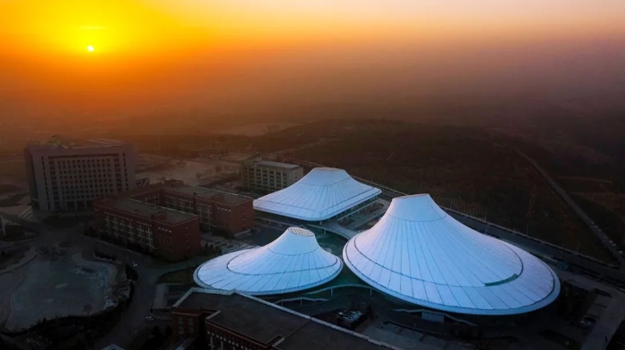 史晓军从大学开始就跟随导师涉猎体育建筑,在反复实践的过程中很专,也很钻,有两个命题被他不断深挖:在日益内卷的行业里,建筑师如何实现自我价值?应该保持怎样的战略和战术?另一方面,当环保和绿色成为未来,我们的城市将需要什么样的公共建筑?榆林职业技术学院体育馆的建筑设计,没有选择以色彩或符号等传统建筑语汇来适配地域,而是尊重当地环境,通过基于透明性选择的三座纯净建筑体量,以东方大写意的方式,使整个建筑群落呈现出「风吹沙丘」的流动姿态,同时展现体育运动精神和当代榆林的城市风貌。