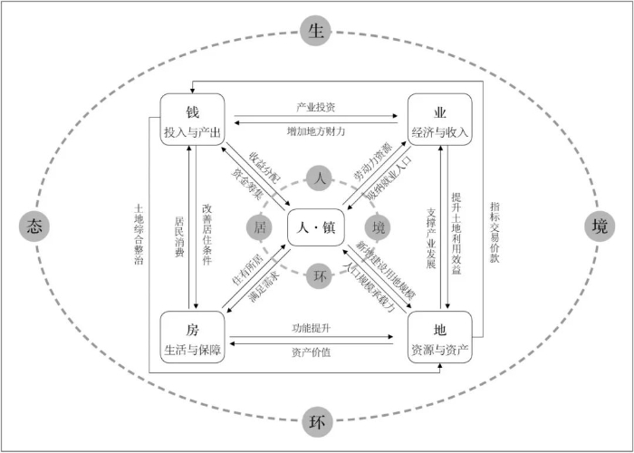 图11 “人、业、地、房、钱、生、环”七大核心要素及相关要素联动关系图