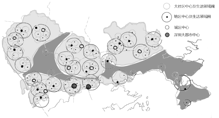 在参与2007年深圳总规时,我们在城市设计专项研究中用设计人的行为方式、设计资源和特征的方式去解析深圳,得到的结论是:深圳不是一个大城市,而是若干个大城市所构成的城市群。建议未来的深圳应该是在同等公共资源投入的标准下,以若干大城市的模式去建构本地的公共服务体系、提供有效服务的、共同协作的一个大城市群。这个结论提醒总规编制时应该对“主副中心”城市中心结构的思路进行检讨,结构体系内涵的变化将改变公共资源投入方式、城市交通组织方式、土地利用、公共空间和公共设施的布局方式,在宏观层面体现公平和效率。
