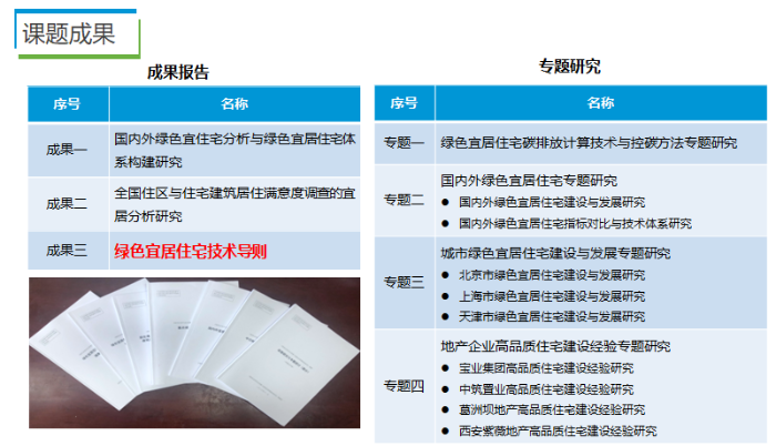 课题组既展开了对国内外先进绿色低碳技术的理论研究,又结合我国住房消费需求进行了调研专题和工程实践实研究,取得丰硕成果。这将对课题成果的实践应用和推广提供有力的支撑。