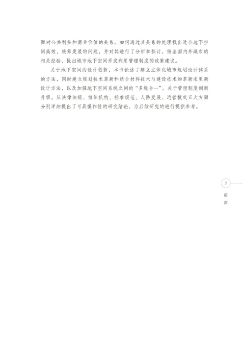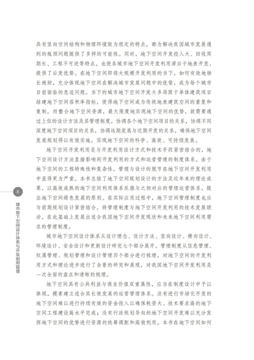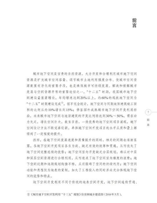 然而,地下空间有着投资大、建设和资金回收周期长、对城市安全影响深远和工程的不可逆性等特征,为更好地统筹城市地上地下空间规划设计,推进地下空间开发建设,提高地下空间开发利用和管理水平,加强城市地下空间设计体系和开发利用管理制度的研究,编纂出版了本书——