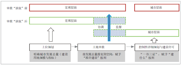 图1 审批“放权”前后土地发展权的形成机制示意图
