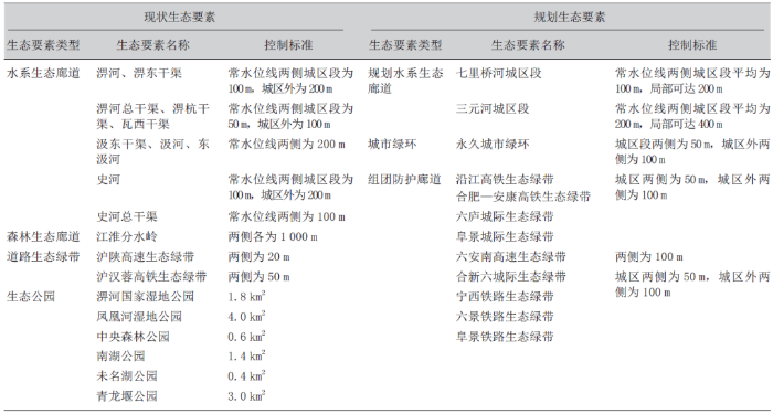 表1 中心城区生态要素及控制标准一览