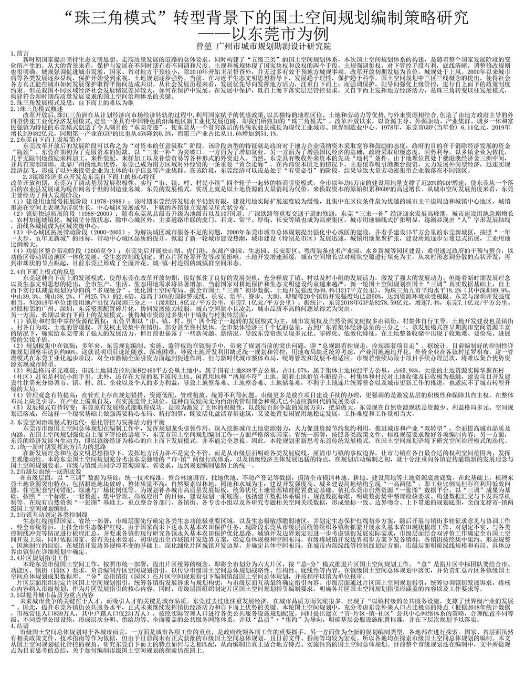 “珠三角模式”转型背景下的国土空间规划编制策略研究——以东莞市为例