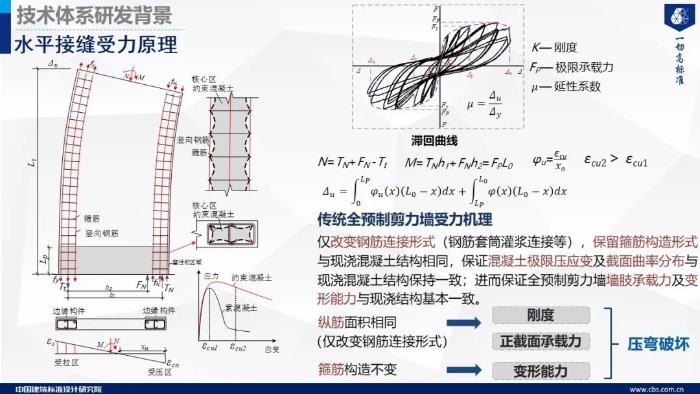 标准院在基础理论方面开展深入研究和创新,结合实际工程应用经验,提出了装配整体式混凝土结构“非等同现浇构造理论”,通过调整及改进装配式混凝土结构的配筋及连接构造,在实现结构高效加工和施工的同时,实现结构“等同现浇”(Equivalent Monolithic Capacity)的受力性能。