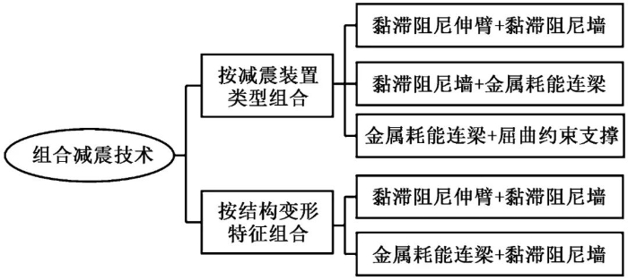 减震组合技术[3]是指根据结构的变形特点以及结构抗震性能化设计要求,合理组合应用多种减震装置,充分发挥各种减震装置耗能效果,减小地震作用,改善结构的抗震性能,其分类如图5所示。