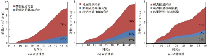 △ 图16 昆明滇池会展中心S2在各地震工况下耗能情况