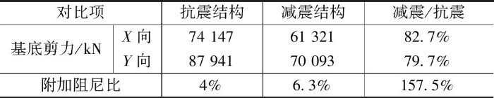 消能减震方案周期较刚性方案有一定程度的增大,同时多遇地震结构阻尼比由4%提高到6.3%。