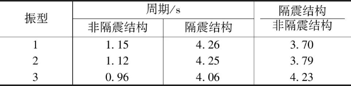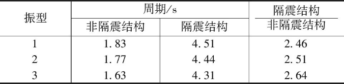 有无隔震装置的结构周期对比 表4