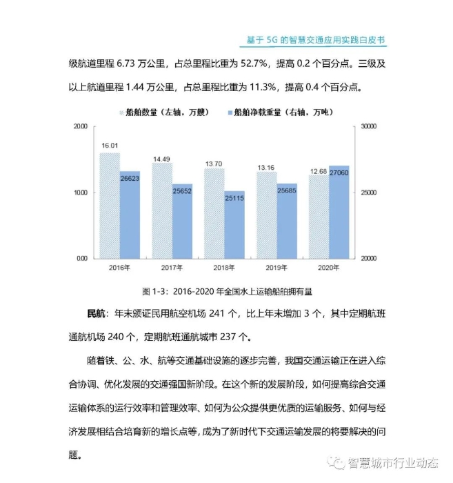 本文(白皮书)从智慧交通行业现状及发展趋势出发分析行业存在的问题,并结合以 5G 为代表的新技术,提出了 5G+ 智慧交通典型业务场景,并针对业务场景需求给出了相应的整体解决方案,并就方案的落地实践效果做了阐述,最后对整个 5G+ 智慧交通做了概述并描绘了未来发展蓝图。本文部分内容摘要: