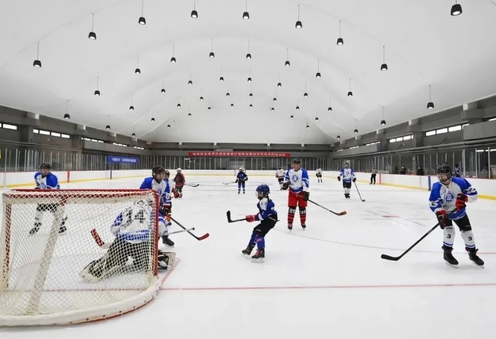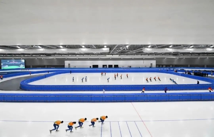 2020年底,一期工程2座冰球馆和1座综合训练馆建成竣工;2021年12月,二期工程大道速滑馆投入使用。