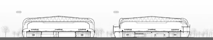 设计团队最终将不利条件转化为有利因素,利用现有场地,塑造出这座“空中速滑馆”,以立体化的空间组织模式化解场地限制,创新性提出冰、陆跑道分层设置,冰场在上、陆地跑道在地面层的立体化的空间组织模式。将冰场层抬高架空,距地6m,架空层下设训练跑道、运动员休息室及相应部分附属用房。