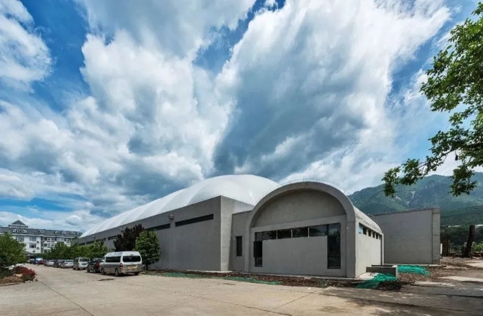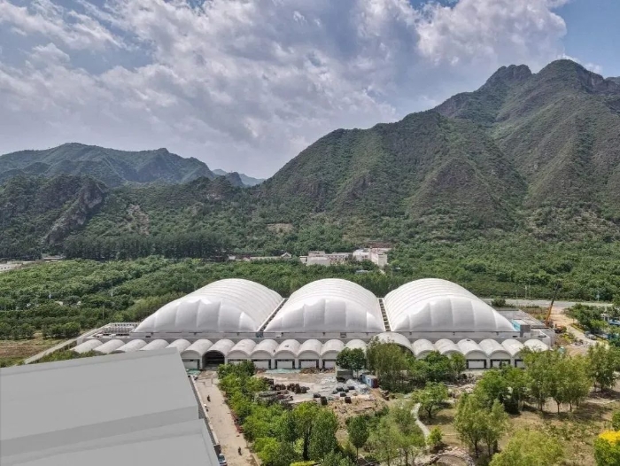 新建1,2号馆的冰场大跨空间采用钢结构拱框膜作为围护体系,保证施工快速高效,结构轻盈、经济,也符合绿色办奥运的宗旨。