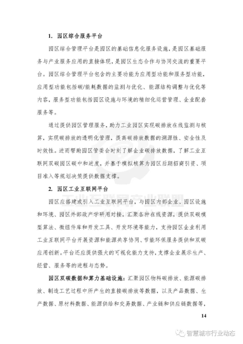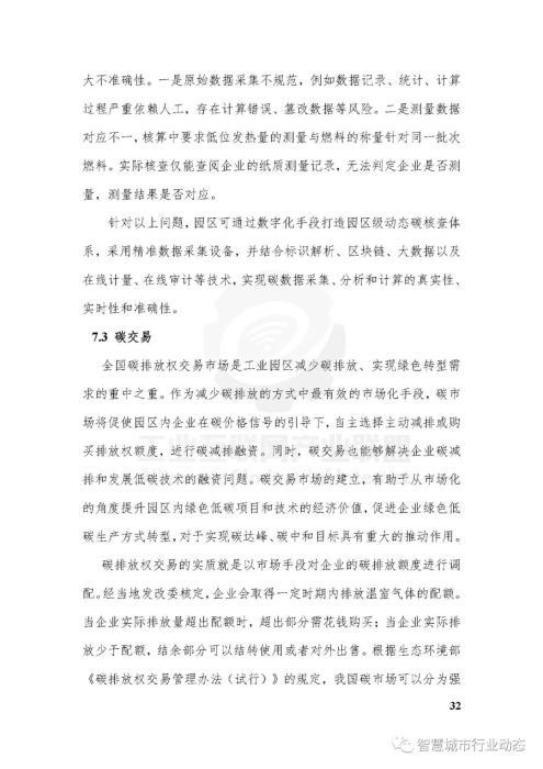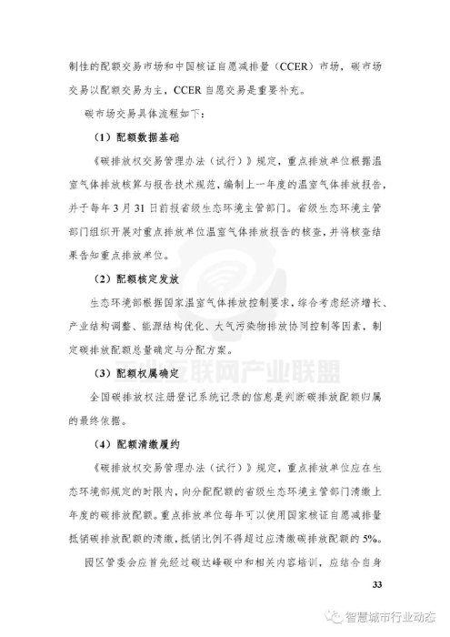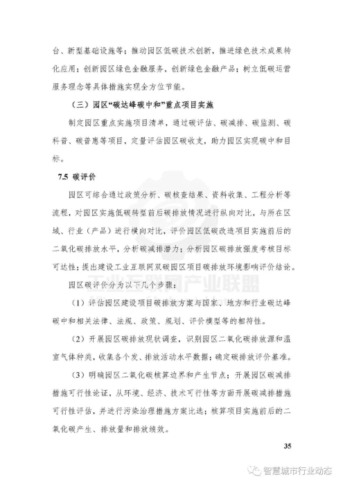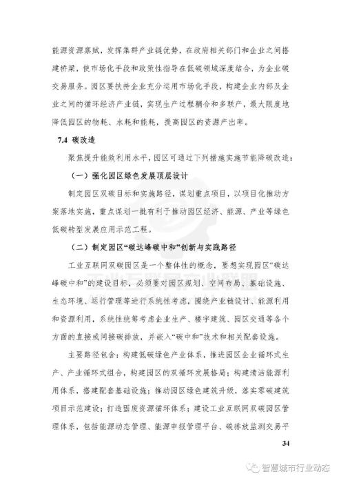 园区是碳排放的主体,也是落实碳中和目标的主体。为推动工业 互联网园区的资源高效利用和绿色低碳发展,园区应通过碳盘查、碳 核查、碳交易、碳改造、碳评价等管理流程推进全面深度减排,实现 园区数字化低碳转型。