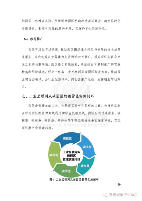 第七部分提出了工业互联网双碳园区的碳管理实施闭环 方案。