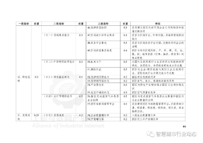 工业互联网双碳园区评价指标体系通过科学的方法,分别从基础 设施、管理保障、协同发展、绿色低碳、发展成效5个要素作为评价 的一级指标,并对各项一级指标进行降维细化,形成工业互联网网络、 工业互联网标识解析等20项二级指标,69项三级指标的综合评估体 系。