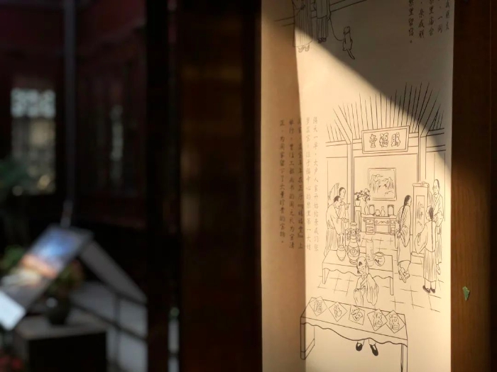 展项:《民间习俗》:此作品根据三种典型的黎里风俗制作成连环画挂轴。在时代的发展和社会形态的变化之下,这些风俗在今天已消失、变化,但这些故事却仍在民间流传。