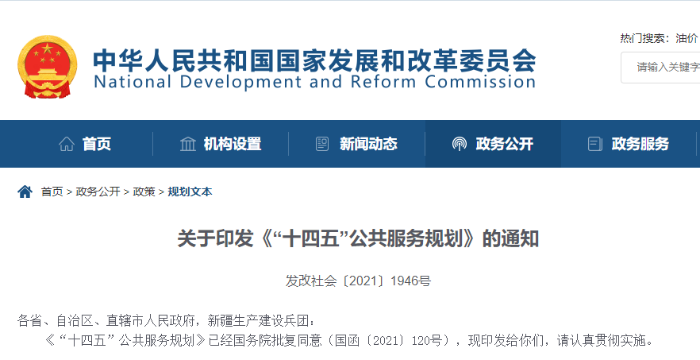 经国务院批复同意,近日,国家发展改革委等部门联合印发了《“十四五”公共服务规划》(发改社会﹝2021﹞1946号,以下简称《规划》)。日前,国家发展改革委有关负责同志就《规划》有关情况回答了记者的提问。