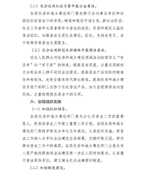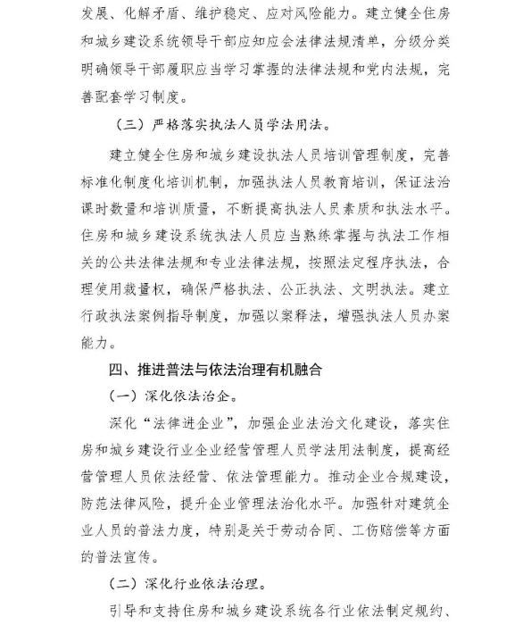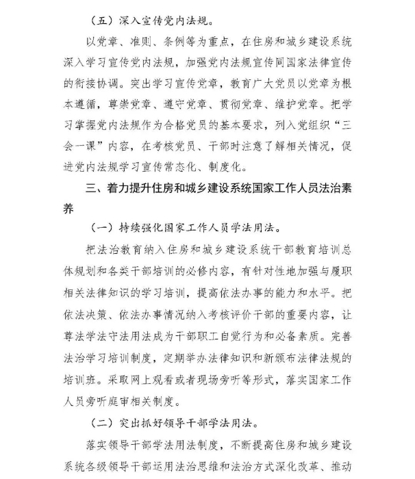 着力提升住房和城乡建设系统国家工作人员法治素养。持续强化国家工作人员学法用法;突出抓好领导干部学法用法;严格落实执法人员学法用法。