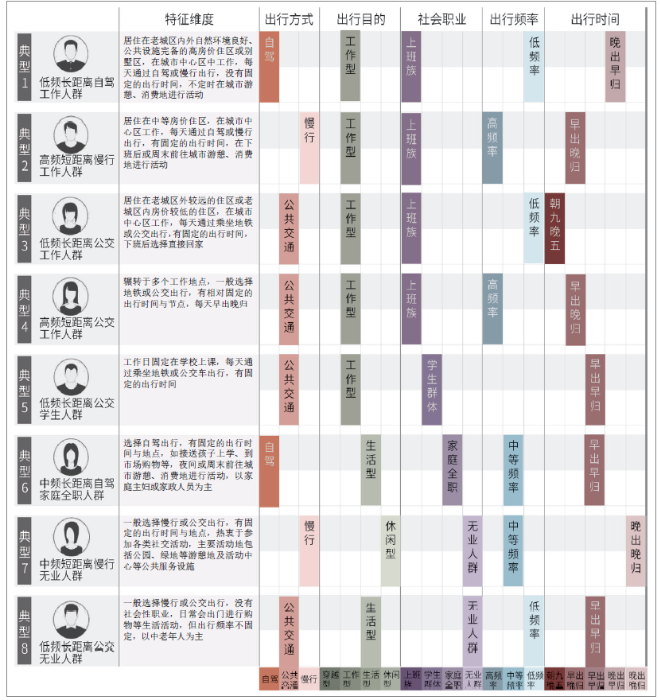 图4 交通拥堵地区8 类典型人群数字画像示意图