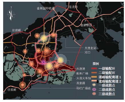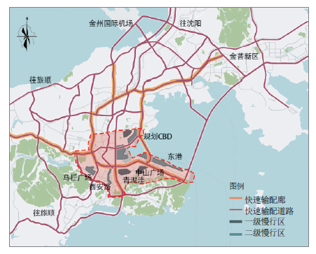 为满足低频长距离自驾工作人群、低频长距离公交工作人群等的中长距离出行需求,应改变梭鱼湾现有的单廊式快速输配结构,建立对外连接的快速输配体系,包括沿大连湾跨海交通、南部通道、机场快速路、五一路和东北大街等构建环梭鱼湾快速输配环,串联起大连北站、大连站、周水子机场和大连港等交通枢纽。